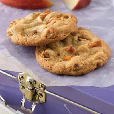 Pretzels give crunch and a salty taste to these easy drop cookies.