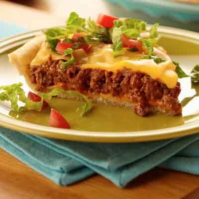All of your favorite taco ingredients in a homemade cheesy crust pie.