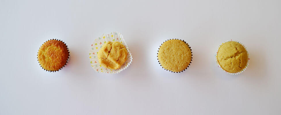 For my baking experiment, I substituted all-purpose flour with coconut flour, garbanzo bean flour, quinoa flour, and brown rice flour. The quinoa and garbanzo bean flour produced powerful “off” flavors that our tasters could not overlook, while the coconut flour and rice flour were acceptable in terms of flavor, but not texture. Due to these unfavorable outcomes, all four of these cupcakes were considered to be unacceptable through the use of a blind taste test.