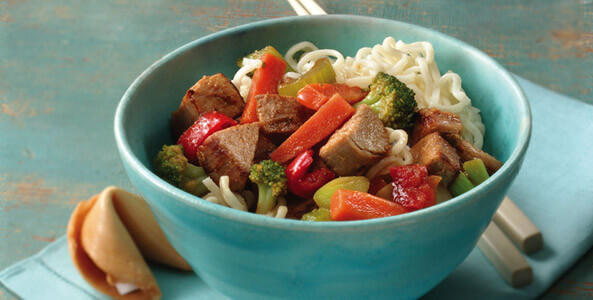 Use your pork from Honey Lime Marinated Pork Tenderloin for Asian Pork Noodle Bowl.