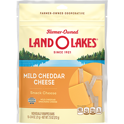 Land O Lakes® Mild Cheddar Snack Cheese, in individually wrapped single servings, is the smooth family favorite for any occasion. Grab a few for the road, the river or the trail.