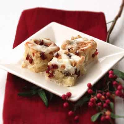 An orange glaze complements this bar filled with dried cranberries, coconut and macadamia nuts. Easy to serve to a crowd, this dessert recipe makes a great addition to Thanksgiving or Christmas get-togethers.